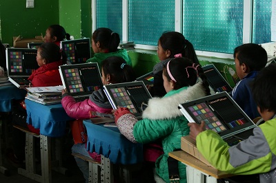 哈秀是青海玉樹藏族自治州的玉樹市轄鄉,離玉樹市府所在地結石鎮有兩個多小時的車程,平均海拔4300米以上。哈秀鄉寄校就坐落于長年積雪的雪山深處。在校的371名學生之中有很多因地震而失去了溫暖完整的家庭,但他們還是堅強樂觀地面對生活。洋溢在他們臉上的天真無邪的笑容讓人不禁感嘆生命的頑強。重建后的哈秀鄉寄校希望逐漸發展成為一所以美術教育為特色的學校,但因硬件所限、師資缺乏,美術教育發展緩慢,但當學生們看到金昇贈送的繪畫彩盒時興奮的尖叫足見他們對美的渴望,他們迫不及待地開始作畫,繪制心中美麗的畫卷和希望。