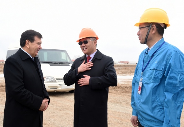 上圖:烏國最高領導訪問位于卡什卡達利亞州卡爾希區(qū)的利泰絲路烏茲別克園區(qū)